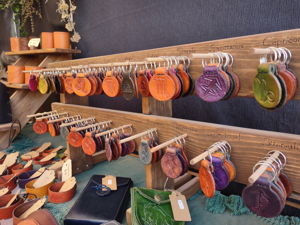 Our leather keychain fobs are crafted by hand, from scratch, using no machines. We cut, carve, tool, dye, and finish with careful attention to detail. Because our Wanderer does it all himself, every element can be customized to your preference. You choose the overall shape, the color, and the design you would like tooled in. As with all of our leather products, you can directly discuss your options with our Wanderer to make sure you receive precisely what you want.