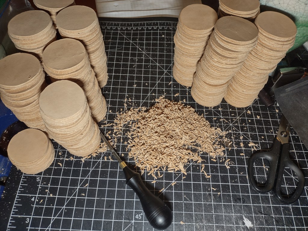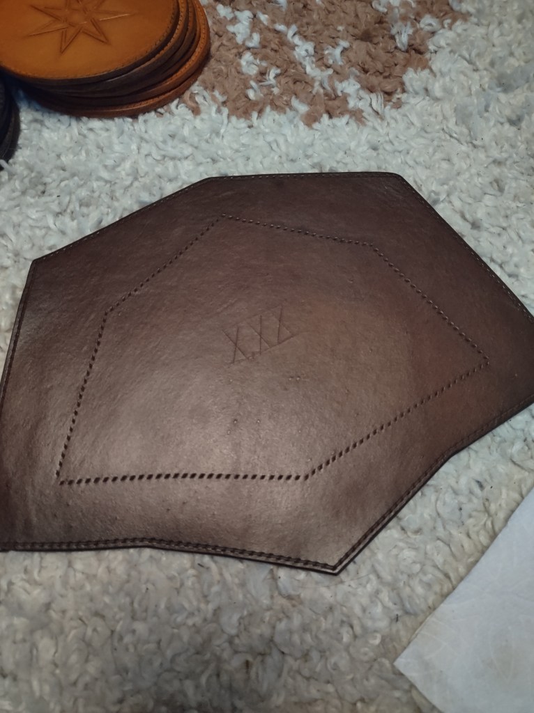 Beveling a project’s edges brings a lot of benefits. First, it tidies up a lot of the little mistakes that happen during the cutting step. Ragged bits are smoothed over and if there’s ink leftover from transferring the pattern, you’ll likely shave that off here. A beveled edge simply looks more intentional and more finished than a sharp edge. If you intend to burnish your edges down the road, this a beveled edge provides a much better surface than a sharp edge. A beveled edge even improves your project’s durability. A sharp edge is much more likely to show damage and the fine edge of an un-beveled piece will be more vulnerable to cracking. Finally, a beveled edge just feels nicer in the hand, at least in my opinion, and my opinion does tend to be the final arbiter of what I do or don’t do for my projects. (I would of course be willing to skip this step if someone were to request it for a custom, some people really do prefer the unbeveled aesthetic.)